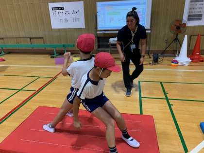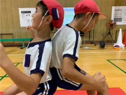 背中相撲で勝負だ!