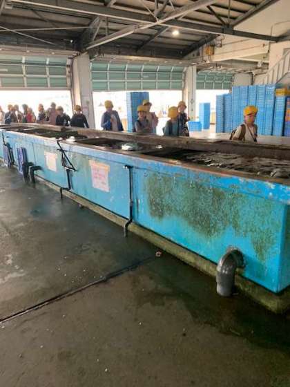 セリ場見学。今日は、天候不良のせいか、セリは行われませんでした。