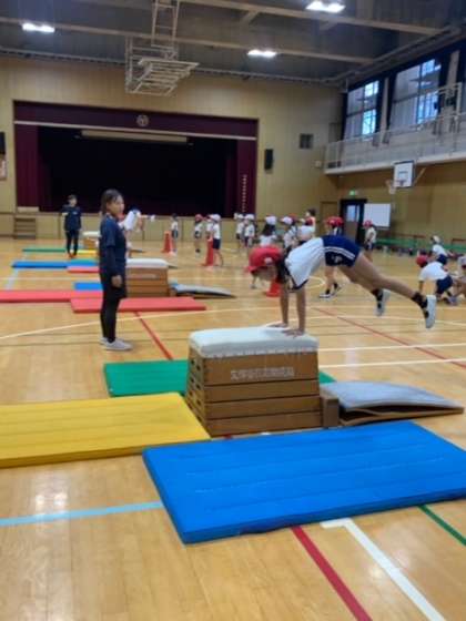 今日の学習は、跳び箱の綺麗な跳び越し方について。
