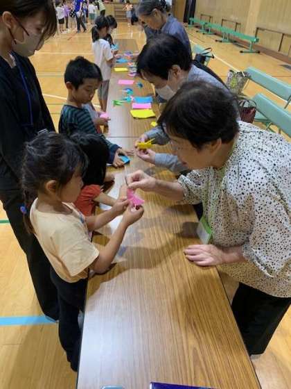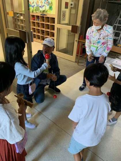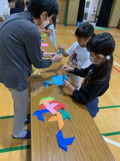今日は、1年生がとても楽しみにしていた生活科のむかしあそびの学習がありました。地域の晴寿会の皆さんが、18名も来てくださいました。