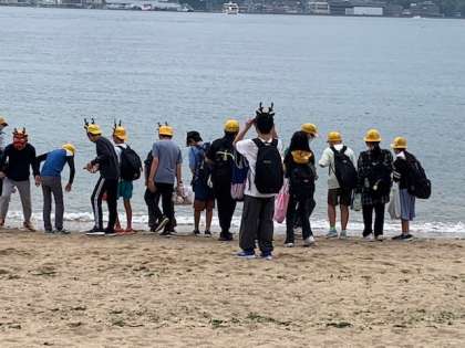 波打ち際で戯れる鹿男子たち。