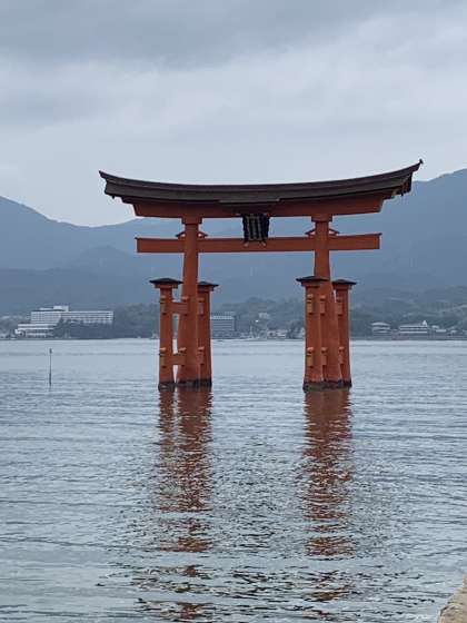 満ち潮へと戻りゆく大鳥居、いとをかし。