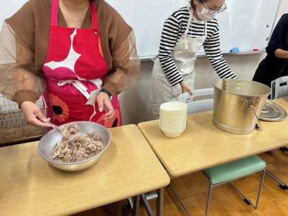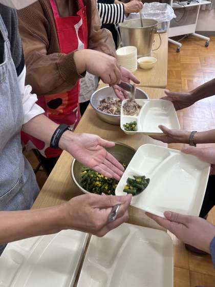 参加者全員で、給食の運搬・配膳・片付けまで行いました。