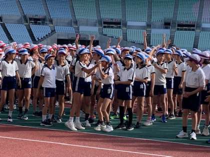 全員がまず、100メートル走のタイムトライアルに挑戦です。