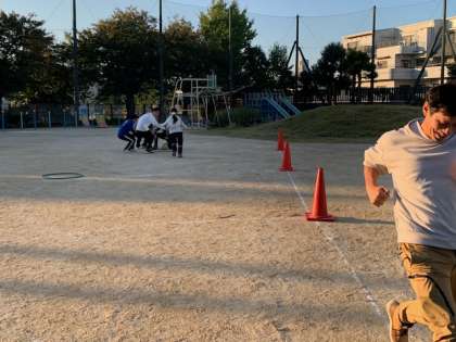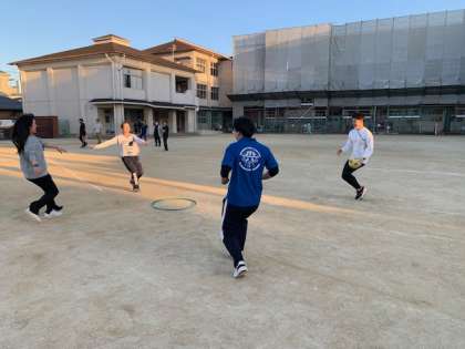 先生たちが楽しんでいるのは、初心者版キックベースボール、名付けて「思いやりキックベース」