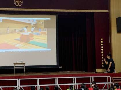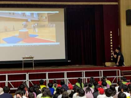 今月19日から始まる跳び箱週間を前に、効果的な跳び箱練習方法や色々な跳び方を紹介する動画を、全校で見ました。