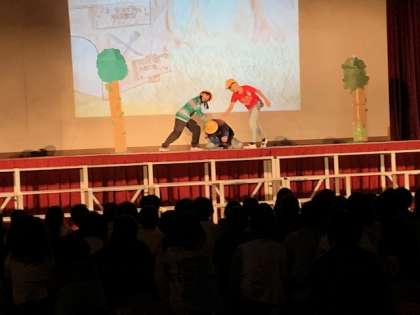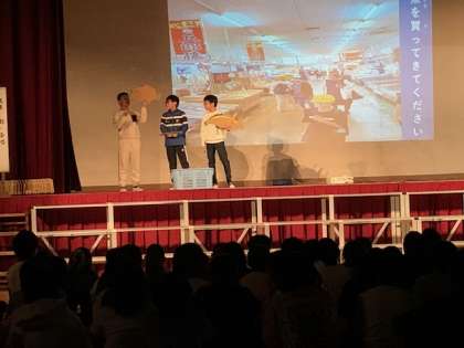 5年生は国語科の物語文と社会科の食料生産の学習にちなんだ発表です。