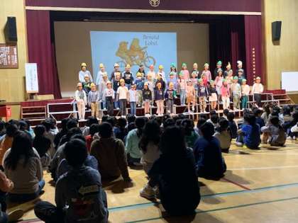 2年生は国語科の物語文の学習にちなんだ発表です。