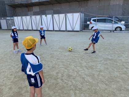 ウォーミングアップの後は、4チームに分かれてのボール回し。
