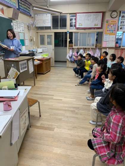 お待ちかね、図書ボランティア「サミーの本棚」の絵本読み聞かせのはじまり、はじまり。