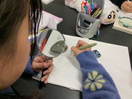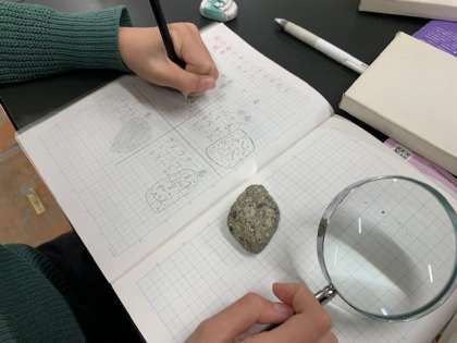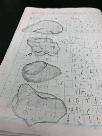 大阪府下の河川で採集した堆積岩を中心に、じっくり観察しました。