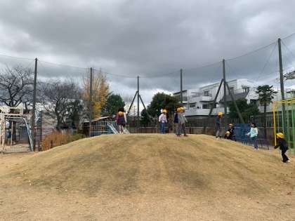 昨日、築山守り隊隊長に刈ってもらったみなみんの頭には、今日も沢山の子どもたちが集っています。