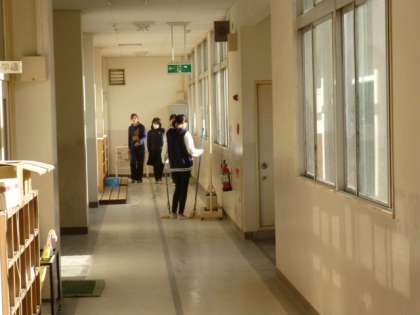 美化委員会は、廊下のモップの交換や廊下のごみ箱の点検などをしていました。