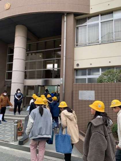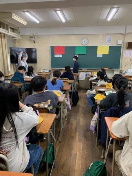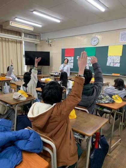 6年生が、阪南中学校へ出向き、1年生の教室で中学校の先生に教えていただきました。1組は、家庭科。2組は国語科でした。