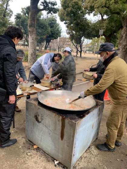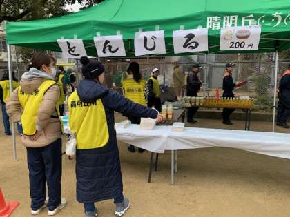 区長さん、連合町会長さん、地活会長さんの挨拶からスタートしたもちつき大会。PTAは、本校名物豚汁販売を任されました。
