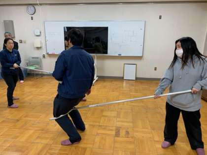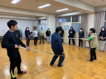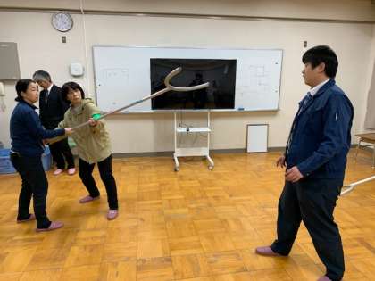 来週実施の不審者進入時対応の避難訓練に向けて、まずは、職員の実技研修です。