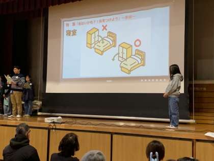発表の中には、会場のお客さんたちを巻き込んでのクイズもあり、一緒に防災について学べる工夫もあります。
