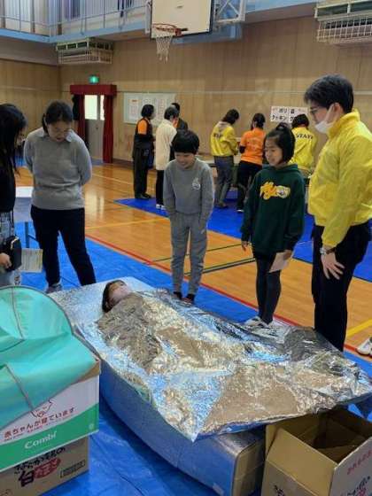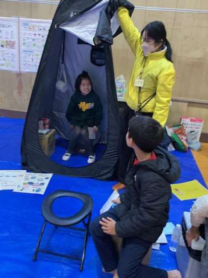 発表が大成功で終わった後も、区長さんに自分達で作ったチラシを配布したり、防災グッズコーナーで色々体験を続けるキッズ達。探求活動は、まだまだ続きます!