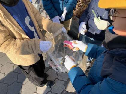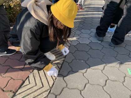 児童朝会の後、みなみん班で校外に出て、地域清掃活動を行います。