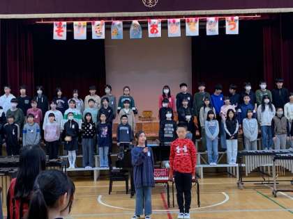 はじめのことばに続いて、集会委員によるゲーム、スタート!