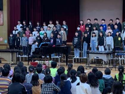 合奏に続いて、卒業式で歌う「旅立ちの日に」の合唱。
