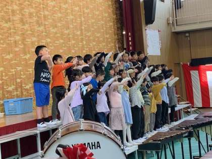 次いで、振付有りの元気な歌、そして、最後に全員での合奏。