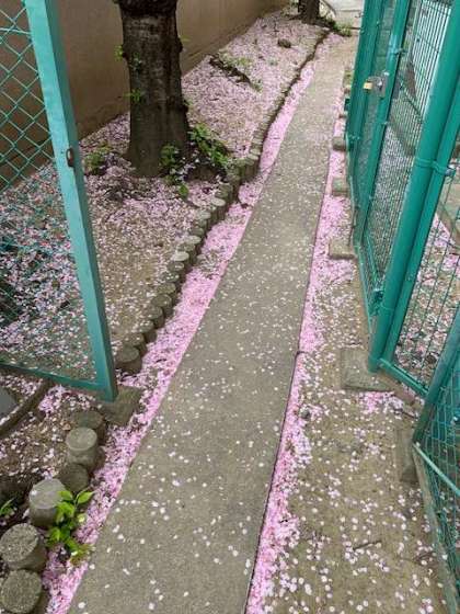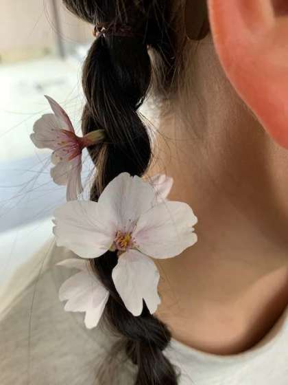 が、散った桜の花びらで、こんなことをして遊ぶ子もいます。