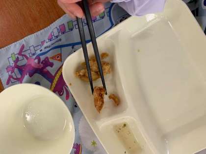おっ、2年生が入学式で教えてくれた「鶏肉の竜田揚げ」だ!