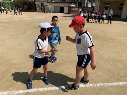 お互いのスタート地点を出て、出会い頭でジャンケン対決。