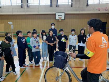 自転車メンテナンスの大切さについて、区役所の地域見守り隊の方や警察の方から指導していただきました。