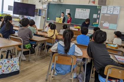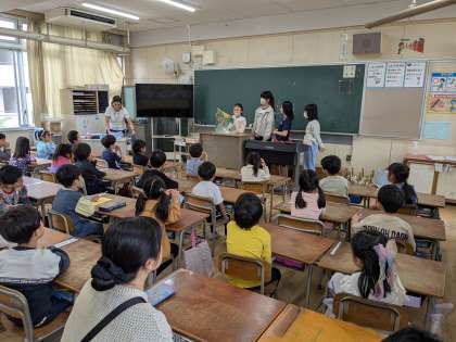 図書委員会のお兄さんお姉さんが、1年生2年生の教室で読み聞かせをしてくれました。今日は紙芝居を選んで来て、読んでいました。1年生、2年生も集中して聞いていました。