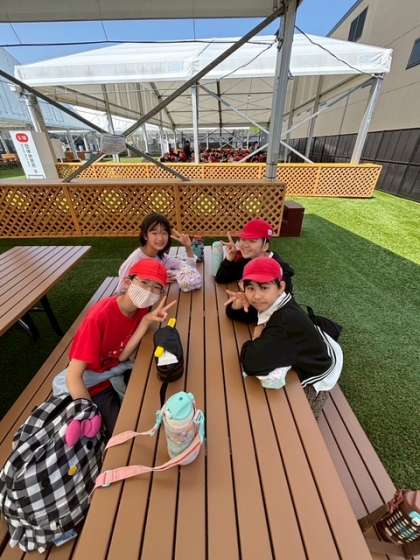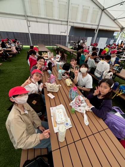 見学を終え、団体休憩所でホッと一息、お弁当タイム。