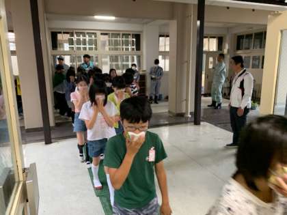 キチンとハンカチで鼻口を押さえて避難できました。
