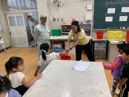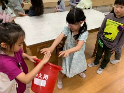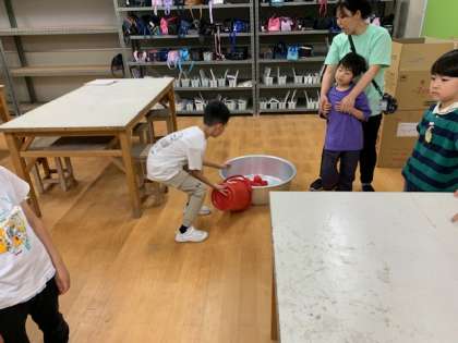 焦るとこぼすバケツリレー。