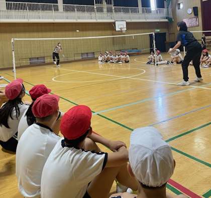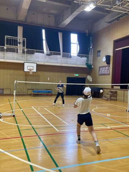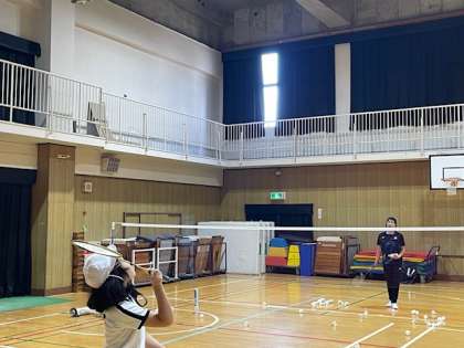 シャトルを拾って、バックステップをして投げるという練習がありました。