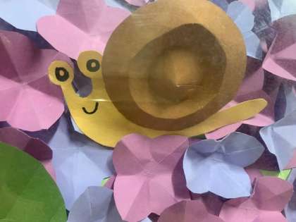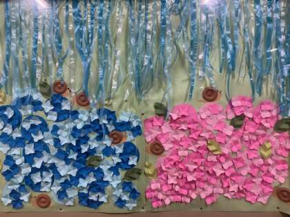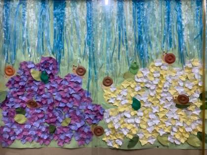 6月の玄関掲示は梅雨時のお花と愛くるしい生き物。