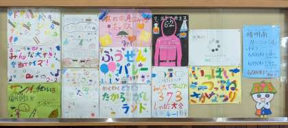 各クラスのお店が決まり、ポスターができ上がりました。それぞれのお店のアピールは12日の集会で行います。楽しそうなお店の名前が並んでいて、子どもたちが登校下校のときに、見入っていました。
