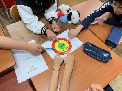 6年生の学習を覗くと、許せる範囲について、グループセッション中。