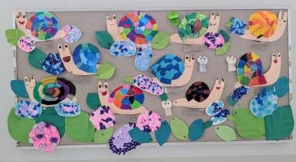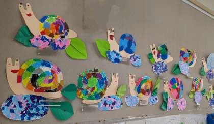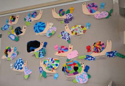1年生の教室にでんでん虫がたくさん現れました。カラフルでいろいろな形や大きさのでんでん虫。