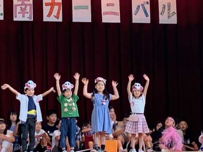 本日の児童集会はお待ちかねのコマーシャルタイム。