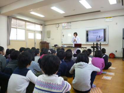 5年生は多目的室にて『薬の正しい使い方講座』を受けました。学校薬剤師さんを講師にお招きして、体を治療するための薬も使い方を間違うと体に害があることやさまざまな薬の形態、薬物乱用のおそろしさについて学習しました。