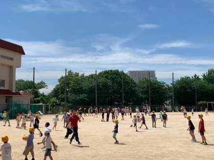 昼休み、運動場には青空を求める人たちで溢れていました。