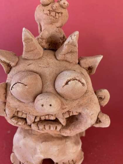 5年の教室にズラリと鎮座するシーサーたち。
