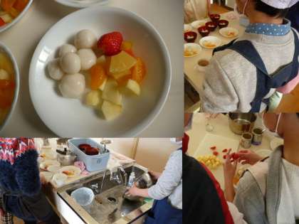 5年生は調理実習で『フルーツポンチ』を作りました。自分たちで中に入れる「白玉だんご」を作って、お茶と一緒に試食をしました。おいしかったようです。