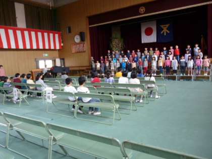 4月7日の入学式の準備のため、2年生と6年生が登校してきました。6年生は新1年生教室の飾りつけや講堂、廊下の掃除をしました。その後、2年生が歓迎のことばのリハーサルをしました。