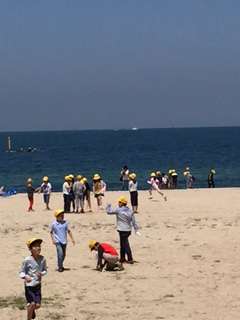 学校で決めた縦割り班の遊びをグループごとにしています。