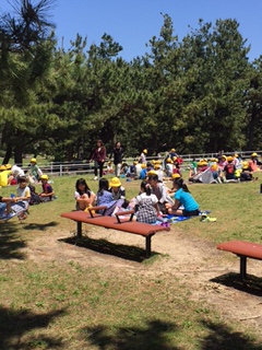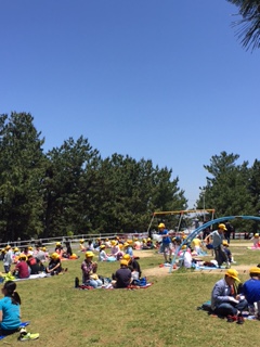 何人かで集まってお弁当を食べ、次の午後からの活動にエネルギーを補給しています。