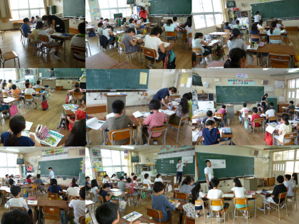 今週は、高学年がそれぞれ各教室と学習室を使って3つのコースに分かれて、習熟度別少人数指導を行っています。どの学年もレディネステストをした上でアンケートを取って自分でコースを選んで学習しています。