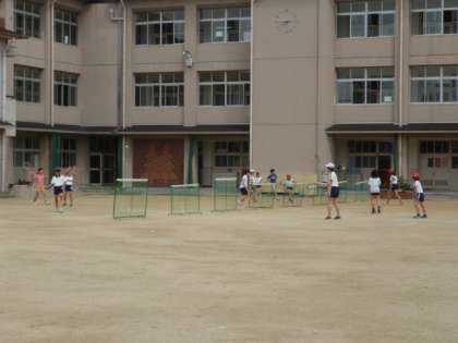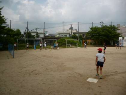 久しぶりに運動場でクラブができました。今日は、屋外クラブは『キックベース』と『テニス』をしてます。