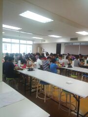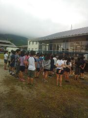 2日目。曇り。昨夜は、なかなか寝付けず、おしゃべりが少しすぎてしまった部屋もありましたが、朝はみんな元気に起床しました。朝の集いは、全員、時間前にきちんと集合できました。食堂で、朝食を終えた後、掃除をします。天気が下り坂なので、プログラムの変更があるかもしれません。